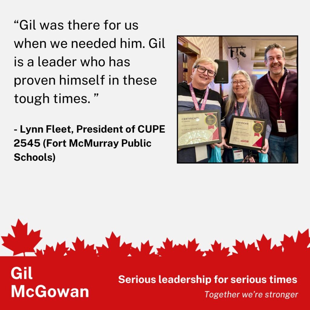 If you’d like to make an endorsement send us a message at contact@gilforafl.ca or text Gil at 780-218-9888!